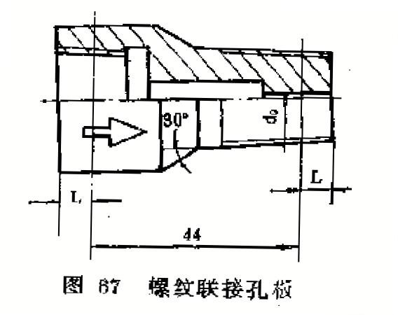 螺紋連接孔板見(圖67)。它相當(dāng)于一個(gè)噴嘴,與前者的不同在于孔板較長。